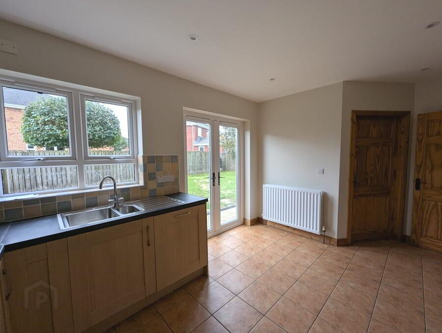 sink & drainer, patio doors leading to rear garden.