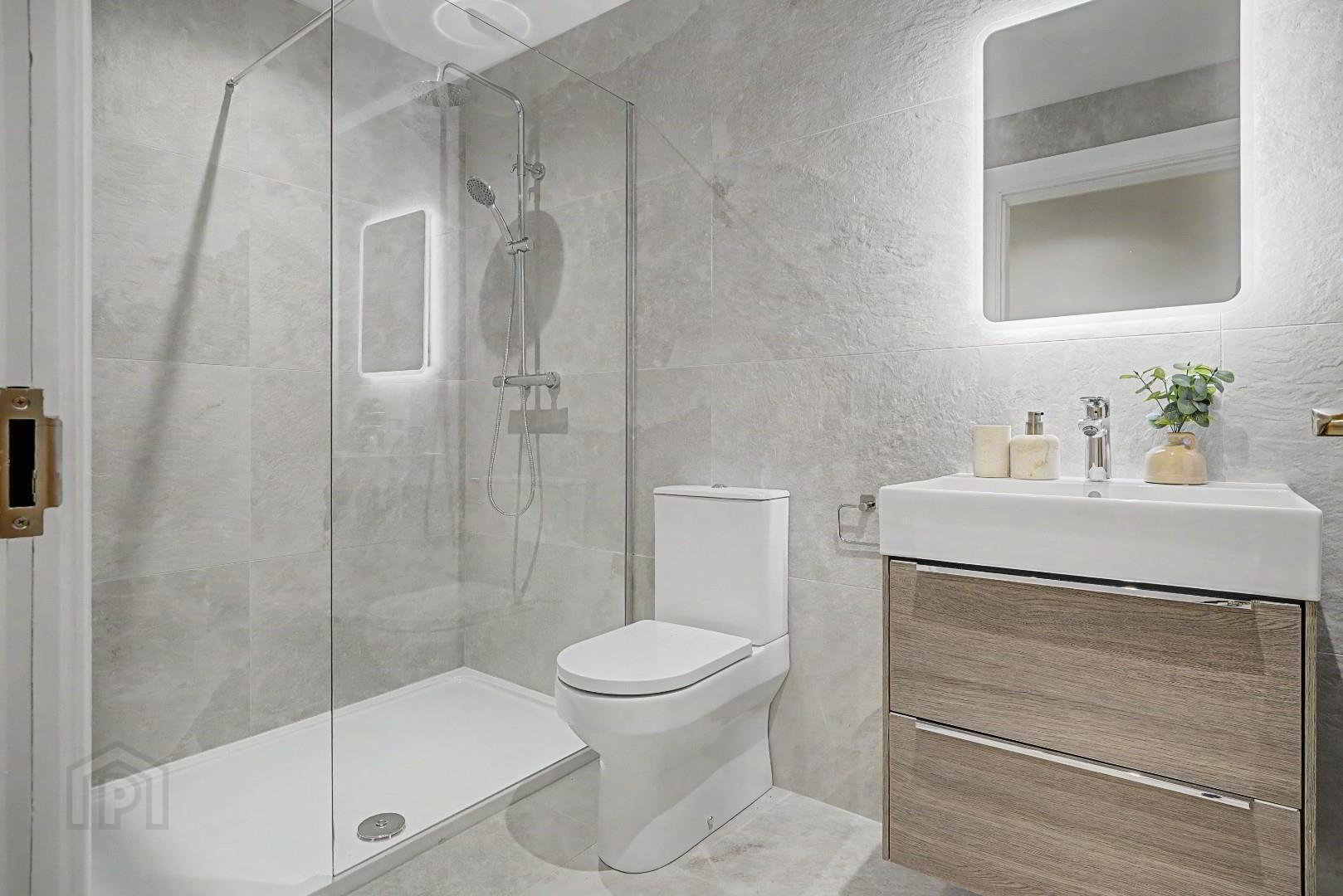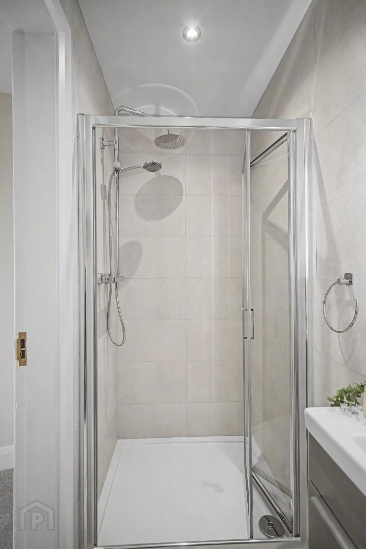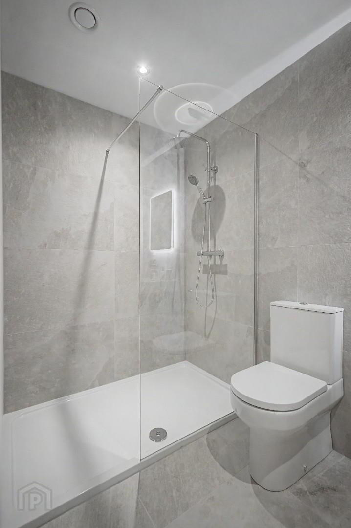 • Shower WC with soft close function Fully tiled shower enclosure and bath,