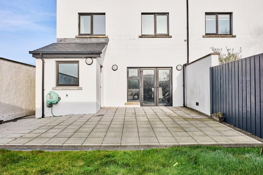 den laid in lawn with paved patio