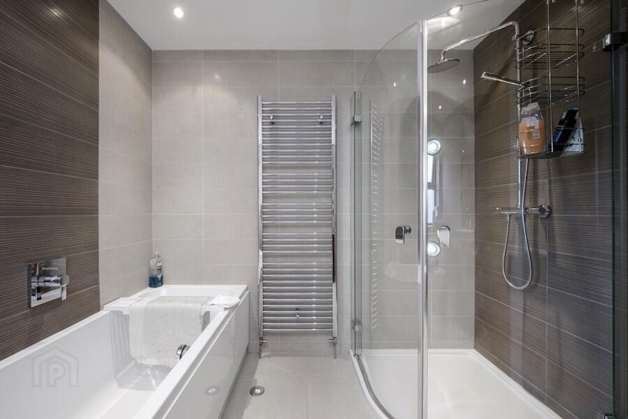 towel rail, extractor fan, feature recessed LED