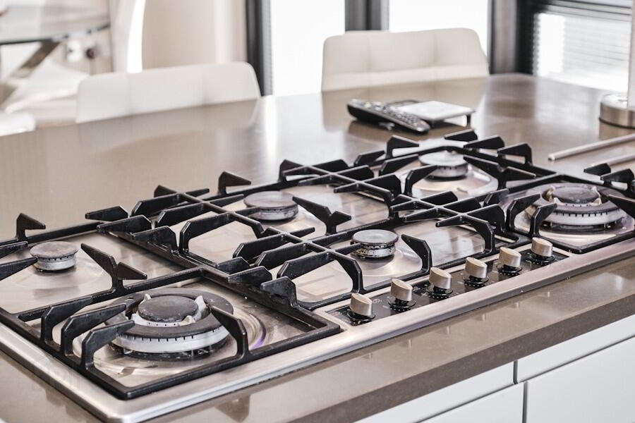 ring gas hob, integrated stainless extractor fan with